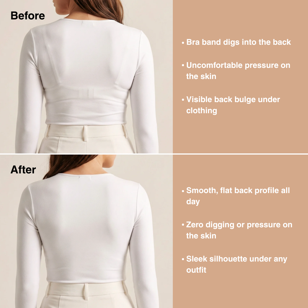 Sirencia works across cup sizes A through F. The contour layer was designed to work with natural breast weight, not against it. That said, we'll be straight with you: if you're a larger bust looking for high-impact sports support, a dedicated sports bra will serve you better during workouts. For work, events, daily life, and everything in between — Sirencia handles it.